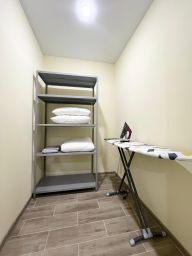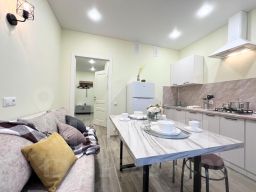 В квартире современная мебель, новая сантехника, натяжные потолки, стеклопакеты, хорошая шумоизоляция, фен, утюг, гладильная доска, сушилка для белья, стиральная машина. Есть все необходимое для проживания.