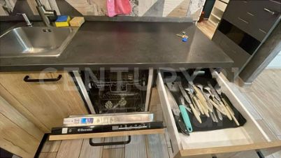 В квартире сделан очень качественный, дизайнерский ремонт от собственника. Помимо радиаторов, установлен в квартире теплый пол. Из мебели в квартире имеется двухуровневая, двуспальная кровать, с множественными зонами хранения. Двухспальный диван. Кухонный гарнитур со встроенной бытовой техникой. В прихожей вместительный шкаф. Шкаф для моющих средств и под стиральную машинку в ванной. На лоджии установлена вместительная тумба, которую также используют в качестве лежанки.