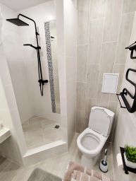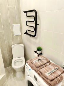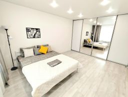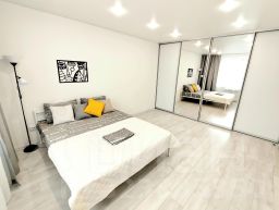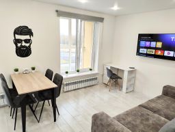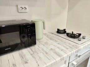 В апартаментах двуспальная кровать, двуспальный диван, постельные принадлежности, бесплатная парковка возле дома, кухонная зона и кухонные принадлежности, большой Smart TV, быстрый Wi-Fi, шампунь, гель для душа, одноразовые зубные щетки, балкон.