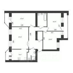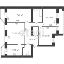 Комнаты 23,9 / 18 / 17.8 / 14.2 кв.м.