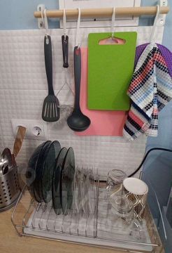 Полотенца, постельное белье, посуда, сушилка для белья, гладильная доска, средства личной гигиены.