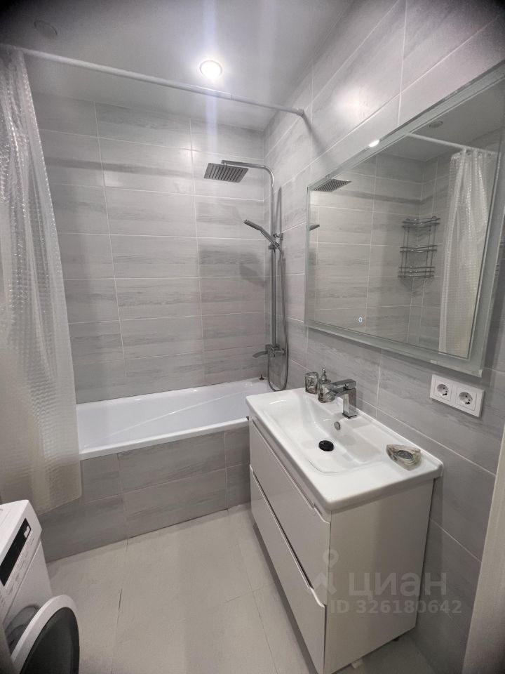 В квартире сделан качественный евроремонт, установлена современная мебель на кухне и в комнате. На кухне есть всё необходимое для комфортного проживания: холодильник, просторные шкафы для хранения и обеденная зона. В ванной комнате установлена ванна, есть стиральная машина. Все помещения оформлены в светлых тонах, что создаёт атмосферу уюта и комфорта.