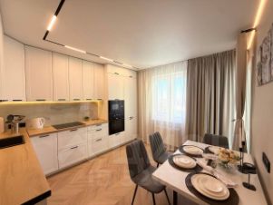 Если вы любите чистоту и комфорт - вам сюда. Погрузиться в атмосферу праздника и отличного настроения можно уже сегодня + качественный сервис! Комфортабельная квартира в новом доме, с евро ремонтом и стильным дизайном