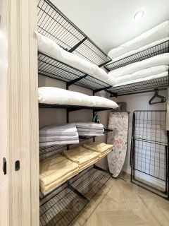 В Вашем распоряжении: три большие двуспальные кровати с мягкими подушками и двуспальный диван, утюг, гладильная доска, сушилка для белья, стиральная машина, 2 кондиционера. Есть все необходимое для проживания!