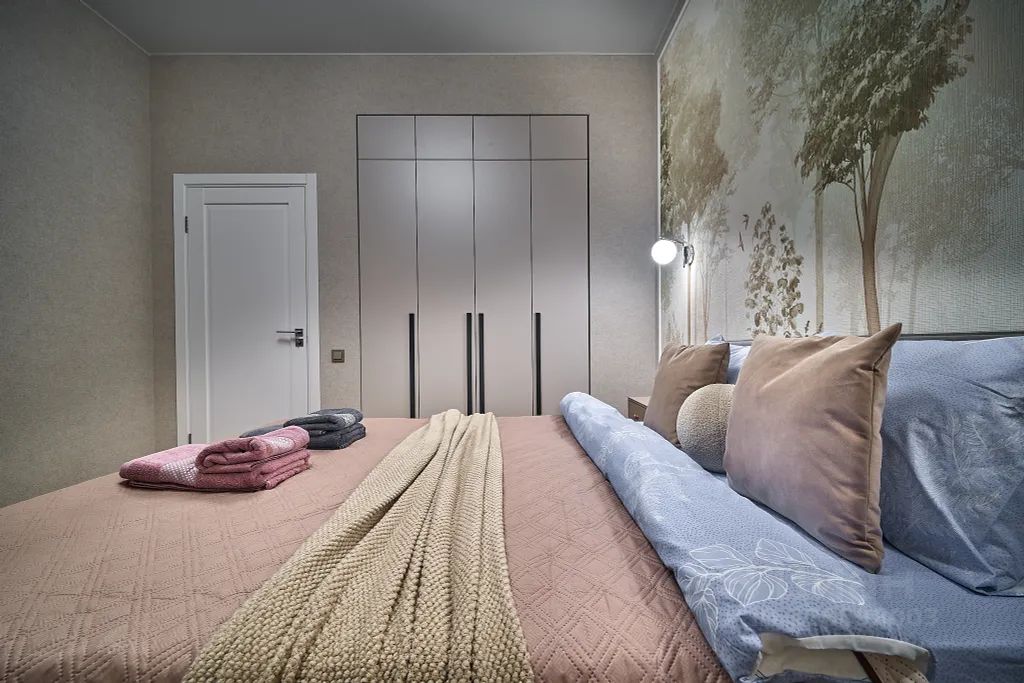 - Новое чистое пастельное белье и махровые полотенца