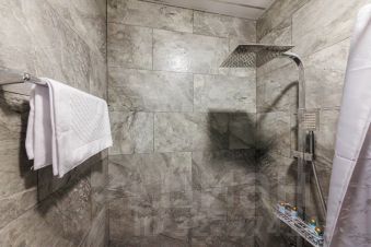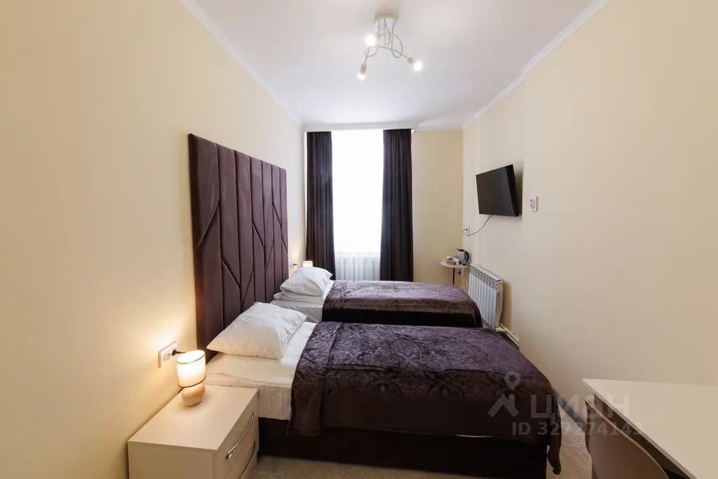Просторная кровать с мягким изголовьем и качественным постельным бельём создаёт ощущение домашнего уюта. Плотные шторы обеспечивают тишину и возможность полноценного сна в любое время суток.