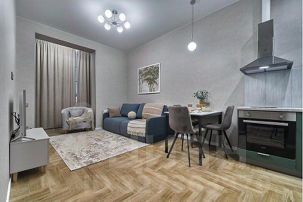 - Телевизор SMART-TV, СВЧ, варочная панель, духовка, посудомойка, холодильник, стиральная машина, фен, утюг