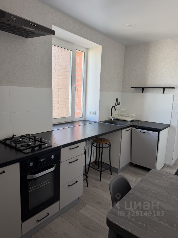В квартире сделан евроремонт, что создаёт современную и комфортную атмосферу. В кухне есть вся необходимая мебель, а также техника: холодильник, телевизор и стиральная машина.
