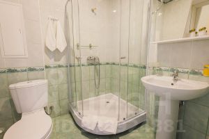 Ванная комната в номере оборудована всем необходимым: современная душевая кабина, фен, туалетные принадлежности, набор косметики для ванной, халат и тапочки.