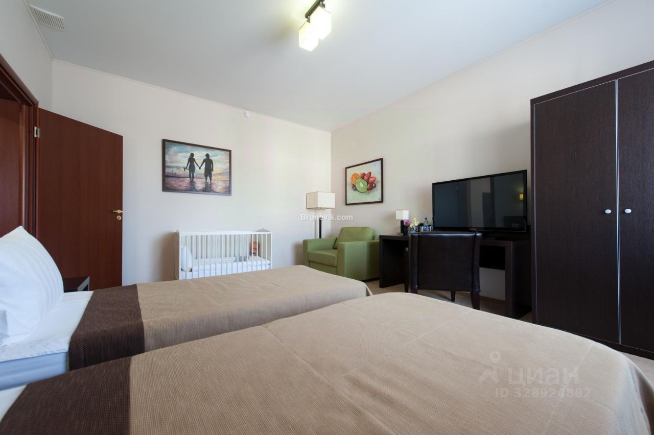 В большой спальне имеется гардероб, письменный стол. телевизор (экран 26 дюймов).