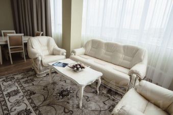 Роскошный просторный номер для комфортного длительного проживания. Двухкомнатный номер выполнен в светлых тонах и находится в корпусе 3*. В номере есть ванна, плита, холодильник, микроволновая печь, кофе-машина. Подъезд к корпусу 3* находится со стороны улицы Гагарина.