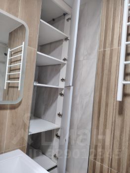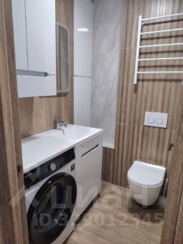 В ванной комнате имеется достаточное количество мест хранения, включая встроенный вместительный шкаф для хранения моющих средств, средств для стирки, запасных средств гигиены. Также в ванной комнате установлена раковина со столешницей, под которую элегантно вписалась полноценная стиральная машина с фронтальной загрузкой.