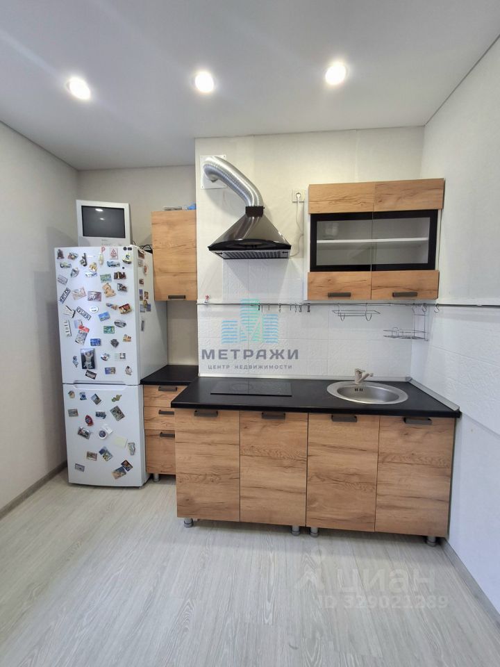 Квартира с современным ремонтом, меблирована и оснащена необходимой техникой: кухонный гарнитур, вытяжка, варочная поверхность, холодильник, телевизор, стиральная машина, обеденная группа (стол и табуреты), диван, платяной шкаф, прихожая.
