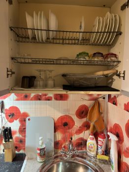 Санузел раздельный, есть гигиенический душ. В ванной комнате потолочная сушилка для белья и полотенцесушитель. Лоджия большая застекленная , что обеспечивает дополнительное пространство для отдыха. Также в квартире имеются дополнительные места для хранения : кладовая (гардеробная), ниша ( шкаф) над проходом на кухню, шкаф в прихожей и 2 шкафа на лоджии. На кухне есть газовая плита и духовой шкаф, а также вся необходимая посуда.