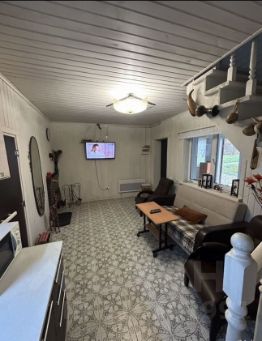 Первый этаж - летняя утепленная веранда ( комната, обеденная и зона отдыха, кухня с газовой плитой). Сауна ( печь на дровах),туалет, душевая, гостиная. На первом этаже теплые электрические полы.