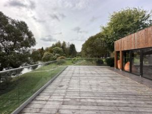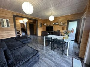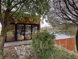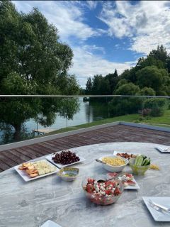 Планировка дома удобна и функциональна. Просторная гостиная с большими окнами из которых открывается вид на реку. Прямо из гостиной есть выход на террасу, переходя в уютную зону с ландшафтным дизайном и речным пирсом. Пристань прямо у дома-чудесное место, где можно покупаться, покататься на сапах, безопасно причалить лодку, с комфортом порыбачить или просто посидеть в уединении, наслаждаясь тишиной и покоем. Прямо в доме есть сауна с купелью и возможностью окунуться в реке. Плюс 2 дополнительные спальни со своими санузлами и отдельно кухонная зона с местами для хранения.