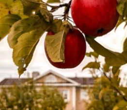 на участке различные плодово-ягодные деревья, кустарники, яблоневый сад.