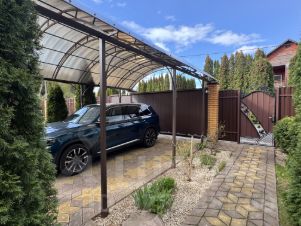 15 соток, ухоженный, ровный, с плодовыми и хвойными деревьями; ландшафтный дизайн, навес для авто; На участке хозблок с подвалом, теплица, беседка с мангальной зоной, грядки; Огорожен по периметру забором из профлиста, с лицевой стороны основание на монолитной ленте с кирпичными столбами; Оборудовано место для машины; Установлены автоматические откатные ворота; Отмостка, дорожки, парковка выложены плиткой.