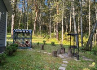 В доме есть все необходимое для проживания 8-10 человек: 4 спальни: в двух комнатах по одной двуспальной кровати, в третьей комнате двуспальная кровать и раскладное кресло, в четвёртой комнате двуспальная кровать и двухъярусная кровать; гостиная с большими панорамными окнами и камином, кухня, 2 санузла, баня на дровах, собственная артезианская скважина. Есть мангал, терраса с красивым видом, Wi-fi, телевизор Smart, посуда любая.