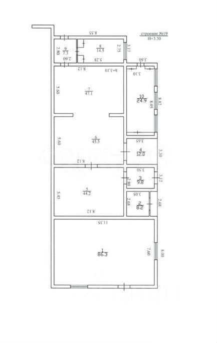 Высота потолков 3,3 м