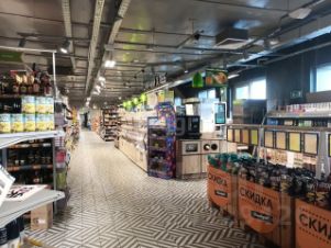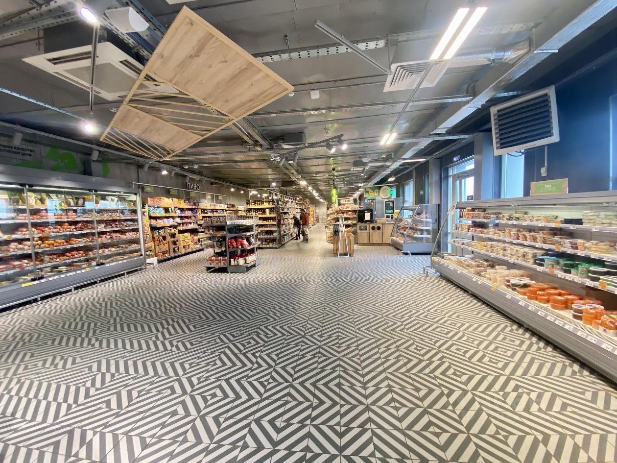 Продуктовый магазин находится на первой линии.
