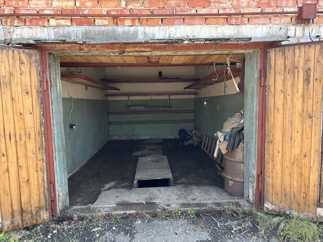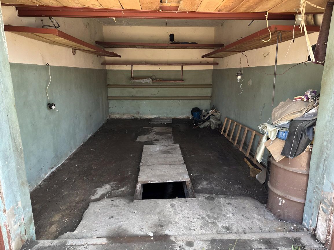 Гараж кирпичный одноэтажный с подвалом, без отделки. В подвале бывает стоит вода, в соответствии с сезоном, как и в других гаражах. Вода откачивается в ливневку перед гаражом.