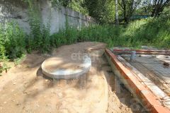 Участок полностью огорожен забором из бетонных плит.