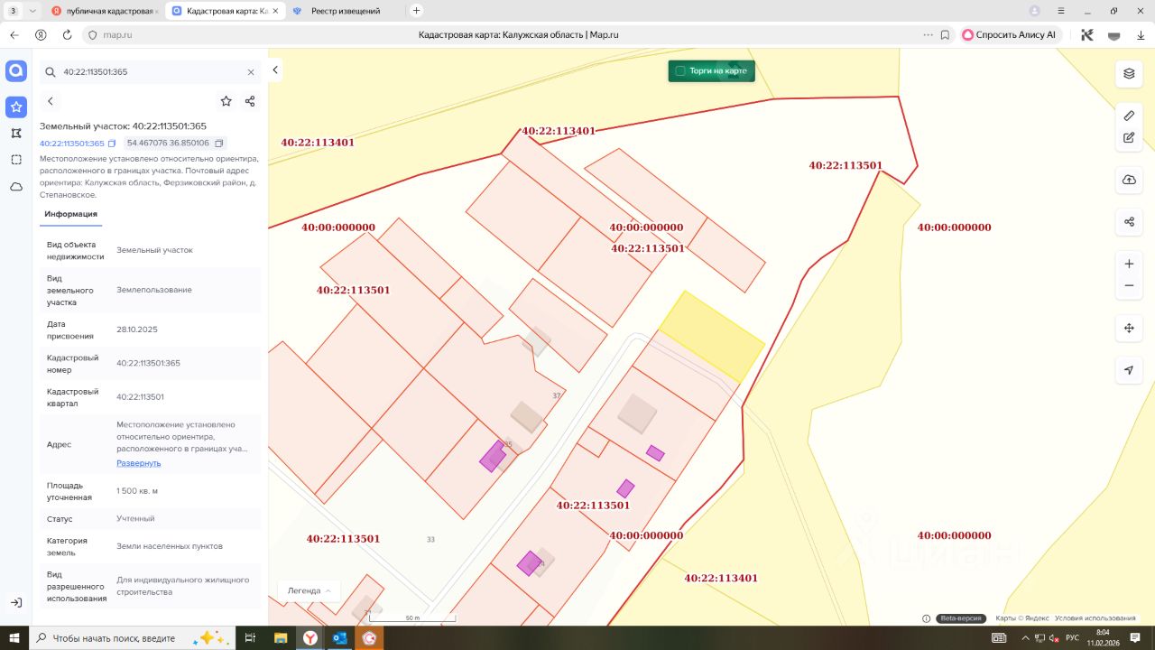 Лот1-по продаже земельного участка земельный участок с кадастровым номером 40:22:113501:365, категория земель: земли населенных пунктов, вид разрешенного использования: для индивидуального жилищного строительства, площадью 1500 +/- 14 кв., местоположение: Местоположение установлено относительно ориентира, расположенного в границах участка. Почтовый адрес ориентира: Калужская область, Ферзиковский район, д. Степановское