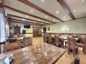 Площадь здания составляет 84,2 кв.м, с продуманной планировкой: общий зал для гостей, барная стойка, кухня с подсобными помещениями, два оборудованных санузла и гардеробная. Дополнительный пожарный выход обеспечивает безопасность. Помещение полностью укомплектовано мебелью и профессиональным оборудованием для приготовления еды, что позволяет начать работу без задержек.