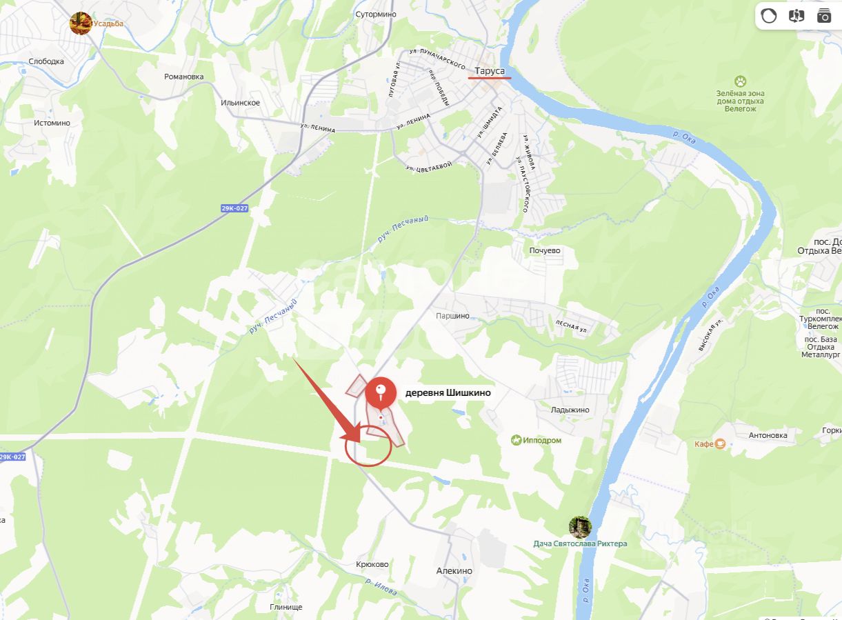 Арт. 133587070 В продаже земельный участок 5,6 гектаров, в 6,4 км от Тарусы (10 мин на автомобиле) до д. Шишкино.