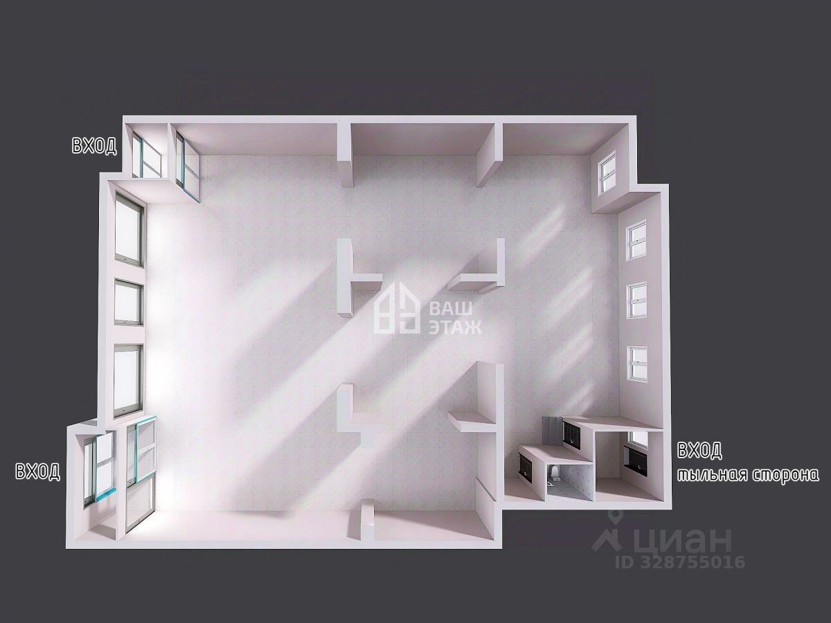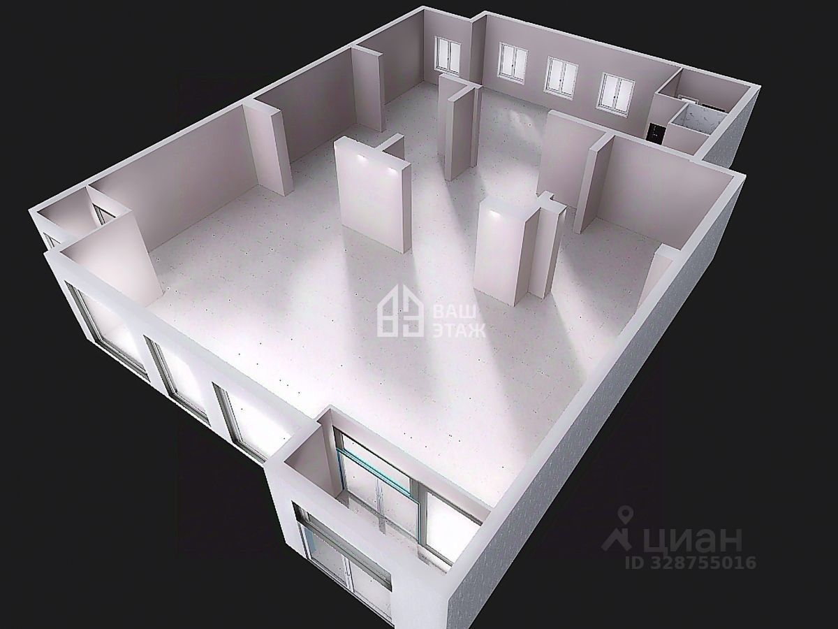 Высота потолков — 4,5 метра, что создает ощущение простора и позволяет реализовать любые дизайнерские решения. Общая площадь составляет 380 кв. метров, помещение свободной планировки — его можно разделить на несколько зон или арендных единиц в зависимости от ваших задач. Большие панорамные окна выходят на главную улицу, обеспечивая обилие естественного света и привлекательный вид для потенциальных клиентов.