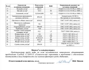 Вода по всем исследованным показателям удовлетворяет требованиям СанПин 1.2.3685-21 Гигиенические нормативы и требования к обеспечению безопасности и безвредности для человека факторов среды обитания
