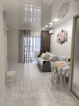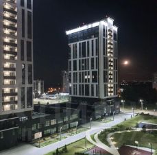 Панорамные окна на лоджии с видом на город с подсветкой. Очень красивая видовая квартира. Качественный, дизайнерский ремонт в белом глянце. Полностью меблирована, оснащена бытовой техникой, ТV, кондиционер, интернет, домофон, консьерж и т.д.