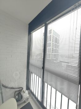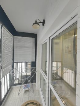 Окна квартиры выходят в закрытый двор без машин. Лоджия большая, её можно оборудовать диваном и например работать в тёплое время года здесь. Сейчас на лоджии стулья, зеркало и консольный столик.