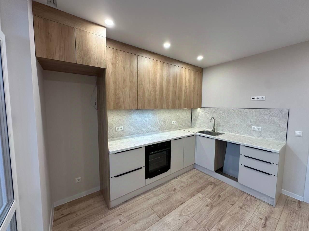 В стоимости входит современный качественный кухонный гарнитур, духовой шкаф, вытяжка встроенная.
