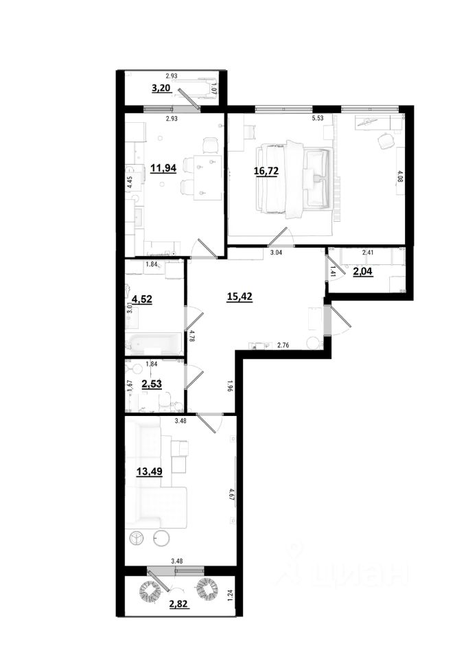 Продаётся 2-комнатная квартира 16 в ЖК "СВОИ" на 4 этаже стоимостью 7 591 360 рублей. White box отделка уже входит в стоимость квартиры! Высокие потолки 2.7 метра. Сдача первой очереди - 1-ый квартал 2026 года.