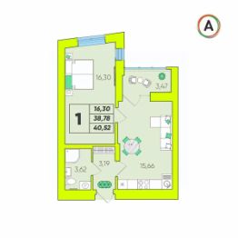 Общая площадь40,52 м²