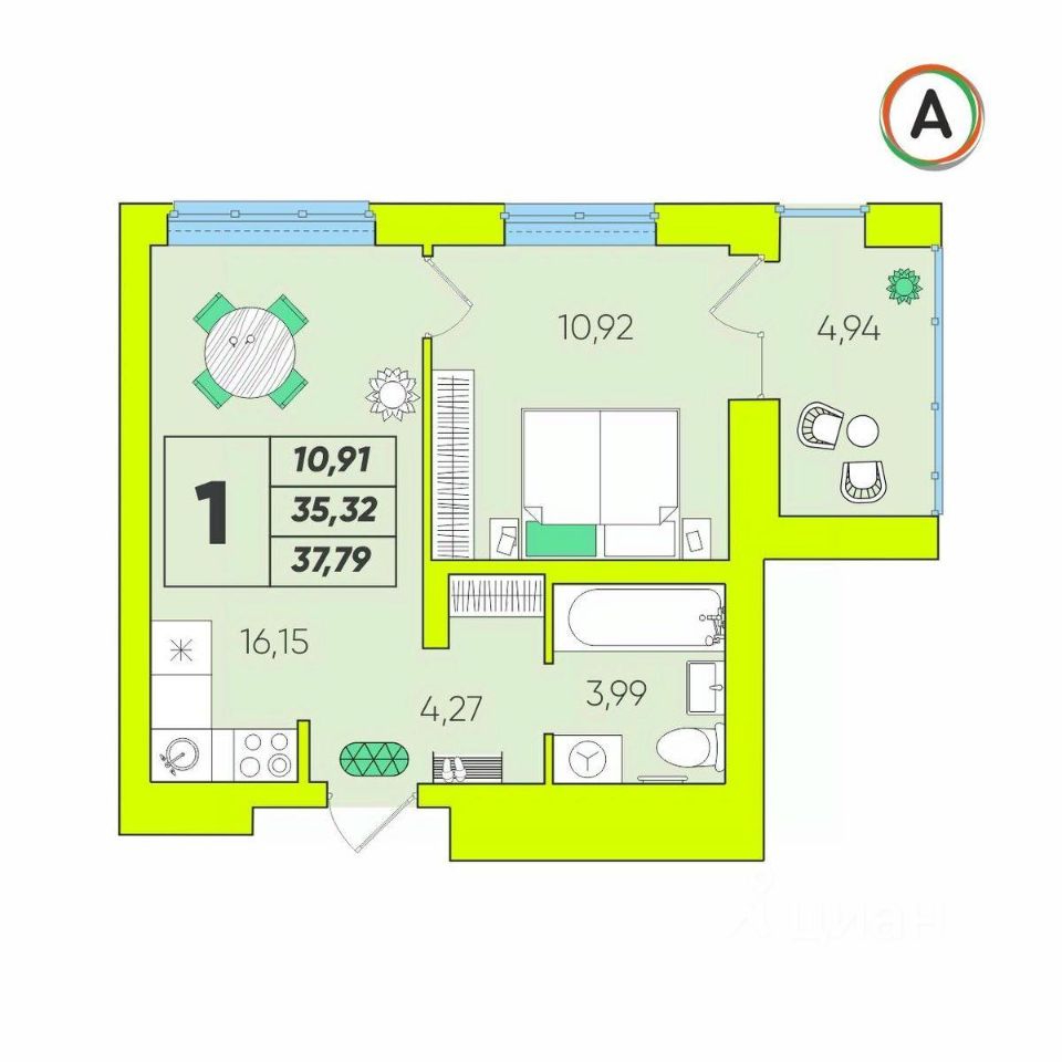 Общая площадь37,79 м²