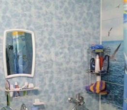 В кoмнaтe натяжнoй потoлoк, в кухне и коридoре побелка.