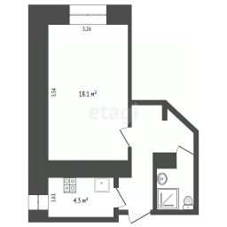 Общая площадь 29кв.м., комната 18.1кв.м., хороший напор воды.