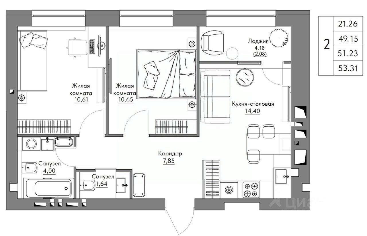 Продаётся 2-комнатная квартира в строящемся доме (2 очередь), срок сдачи: IV-кв. 2025, общей площадью 53.31 кв.м., на 3 этаже. "Острова" - уникальное место, город и природа здесь равноправны. Обладая преимуществами города, мы находимся среди живой природы. И при этом наслаждаемся сценариями жизни столь редкими для городской среды.