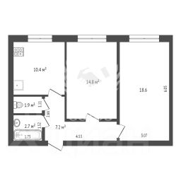 Общая площадь: 55,6 м²