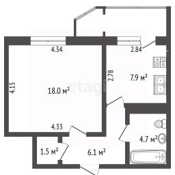 Просторная комната (18 м²) с ламинатом, кухня 7,9 м² с утеплённым линолеумом