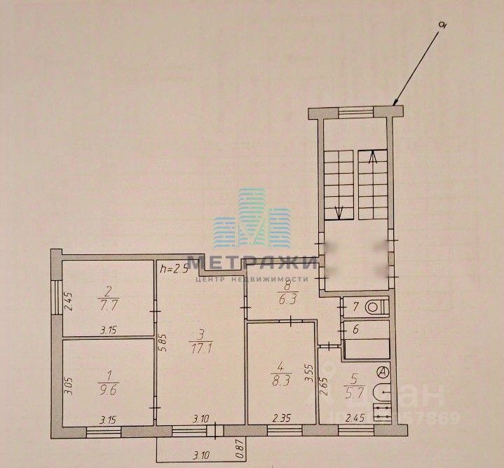 Общая площадь : 57.8/42.7/5.7 кв.м