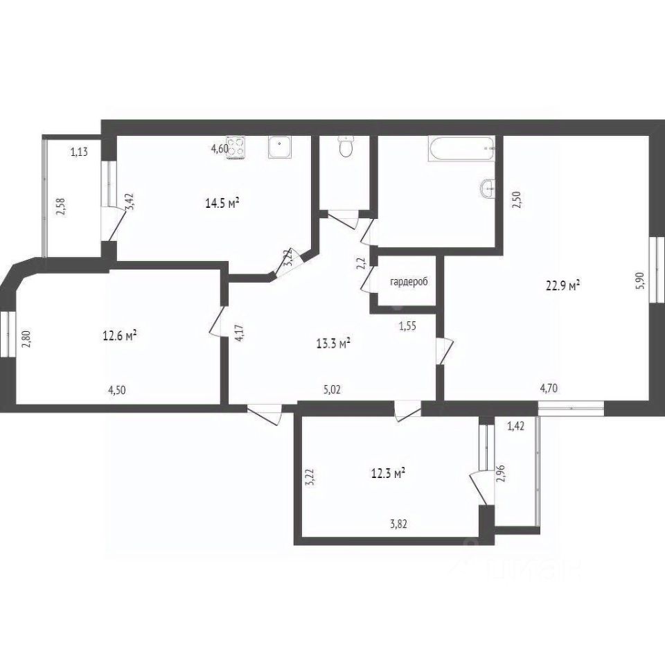 Площадь квартиры 90кв.м.