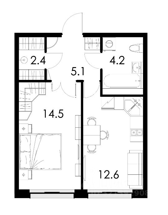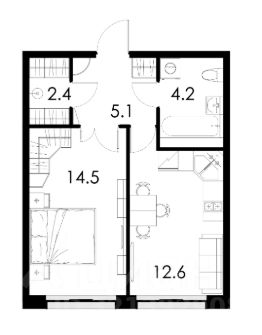 Просторная кухня площадью 12.6 квадратных метров станет отличным местом для семейных ужинов и встреч с друзьями. Жилая площадь составляет 14.5 квадратных метров, что позволяет комфортно разместиться одному человеку или паре. Санузел совмещённый, из окон открывается прекрасный вид на улицу и лес.
