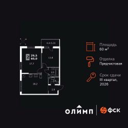Продаётся 2-к квартира номер 174 общей площадью 60 кв.м. на 22-м этаже 24 этажного здания. Отделка Whitebox. Цена с учётом скидки.