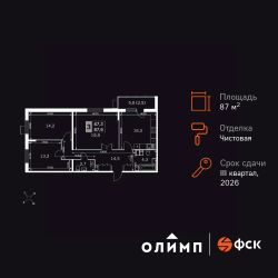 Продаётся 3-к квартира номер 90 общей площадью 87.6 кв.м. на 13-м этаже 22 этажного здания. Чистовая отделка. Цена с учётом скидки.