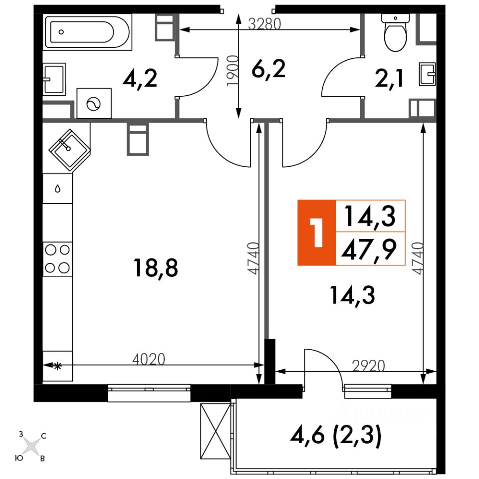 Продаётся 1-к квартира номер 10 общей площадью 47.9 кв.м. на 2-м этаже 22 этажного дома. Без отделки. Цена с учётом скидки!