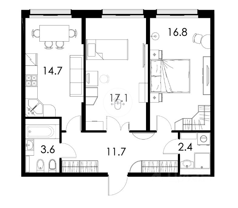 Просторная кухня площадью 14.7 квадратных метра станет отличным местом для семейных ужинов и встреч с друзьями. Жилая площадь составляет 33.9 квадратных метра. Из окон открывается прекрасный вид на улицу и лес.